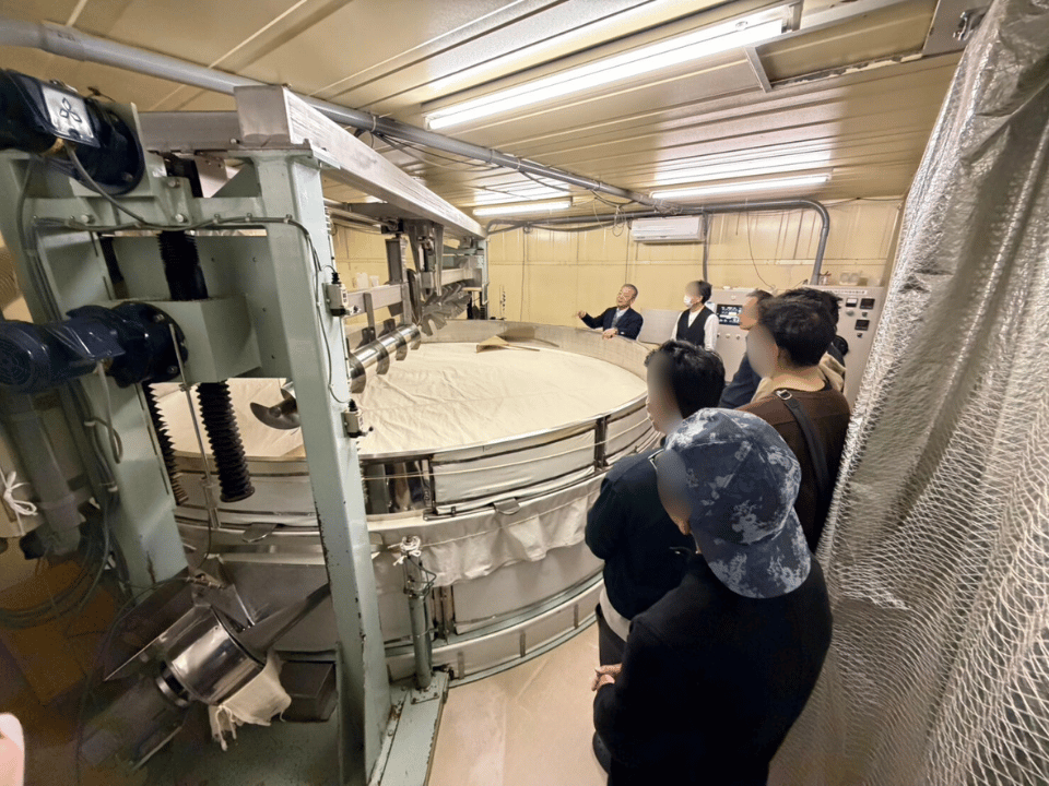 蔵に到着すると、2グループに分かれて、山田社長と杜氏さんがそれぞれ蔵内を案内してくださいました。